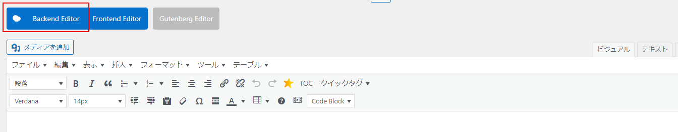 2.エディタ部分に表示されている「Backend Editor」をクリックします。